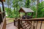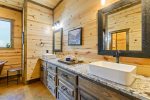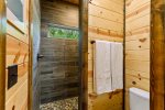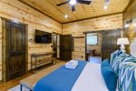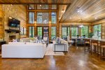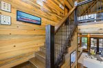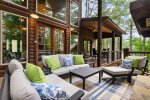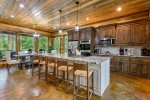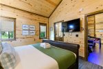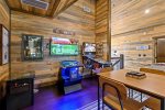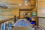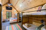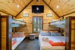 When it comes to catching some zzz's, the four bedrooms are a comfortable treat. The bedrooms include three kings with en-suite bathrooms that offer such sumptuous amenities as a freestanding soaker tub, oversized walk-in shower or double sink vanity. The fourth bedroom is a vaulted bunk room that can accommodate grown-ups and kids alike with one king bed and five twin bunks. If you aren't ready to settle down for bed just yet, the cabin offers an array of indoor activities including a series of TVs for catching up on your favorite shows, movies and sports teams, plus there is a loft game area with video arcade game table.