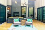 Leaving the cabin through the bedrooms 6 ft. sliding glass doors into the beautiful forest that makes up Sweet Serenity Resort, you are able to take advantage of the cozy Dr. Wellness Tranquillity sunken hot tub equipped with two lounge seats, 31 jets, and blue tooth speakers. You can also enjoy the double-sided fireplace from the comfort of the hot tub while having a cocktail and recharging your soul. An open area sun deck equipped with two fully reclining sun chairs and a gas grill only add to the amenities you will enjoy during your stay at Key West Cottage. Oh, and don’t forget the wood-burning fire pit and Adirondack chairs nestled within the landscape for enjoying those beautiful Oklahoma nights. No expense was spared from the development to the completion of this cabin!