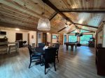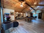 15 minutes north of Hochatown located within Sweet Serenity Luxury Resort ia a 36-acre private and secluded resort with only 5 cabins on the property. The resort includes an inground swimming pool (seasonal access) and a clubhouse (year-round access). The clubhouse includes a gym, library with seating area, dining area, bathroom, game room with a pool table, a video arcade table, a poker/snooker table, and a full kitchen to use for events.