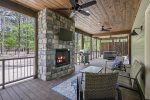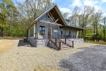 The incredible experience of Kiss Me Goodnight continues when you step out onto the back porch and experience what makes this serene part of Oklahoma so special. Relax on the deck in front of another gas log fireplace and watch your favorite tv shows or movies. Or, at the end of a long day exploring Beavers Bend State Park, with it's many activities such as fishing, hiking, or boating, relax and unwind in the spa and loosen up those sore muscles. Off the deck, another gathering spot for you and your guests is the wood burning firepit area complete with 4 Adirondack chairs. Cook hot dogs and s'mores over an open fire, tell ghost stories, and talk about your exciting adventures of the day under the stunning star filled skies. The perfect end to a perfect day.